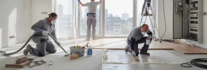 La complexité de cette opération s’accentue avec l’évolution des matériaux de construction modernes et des normes environnementales de plus en plus strictes. Chaque type de résidu présente des défis spécifiques nécessitant une approche adaptée, depuis l’aspiration HEPA des particules microscopiques jusqu’au décapage chimique des adhésifs polyuréthane. L’enjeu dépasse la simple propreté visuelle pour englober la qualité de l’air intérieur et la pérennité des installations.